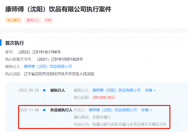 据企查查信息显示,康师傅(沈阳)饮品有限公司成立于2005年,注册资本4100万美元,由康师傅饮品投资(中国)有限公司全资持股。