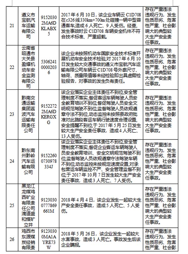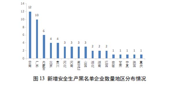 安全生产黑名单:本月新增安全生产黑名单企业59家。从地区分布看,主要集中在云南、广东、内蒙古等地区(见图13)。从失信行为看,主要是企业存在严重违法违规行为,发生性质恶劣、危害性严重、社会影响大的典型较大生产安全责任事故,占比达61.02%;其次是采取隐蔽、欺骗或阻碍等方式逃避、对抗监管监察,占比16.95%(见表8)。