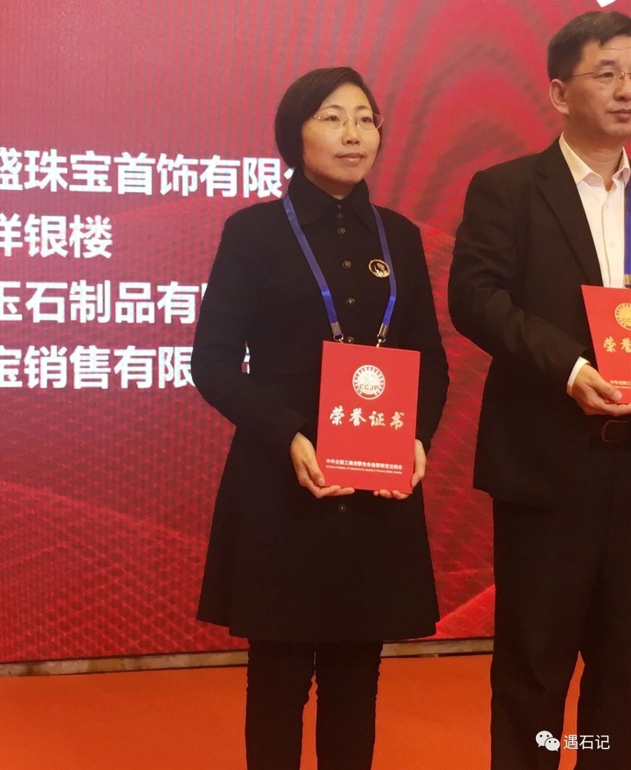 遇石记董事长师秀娜女上台领奖