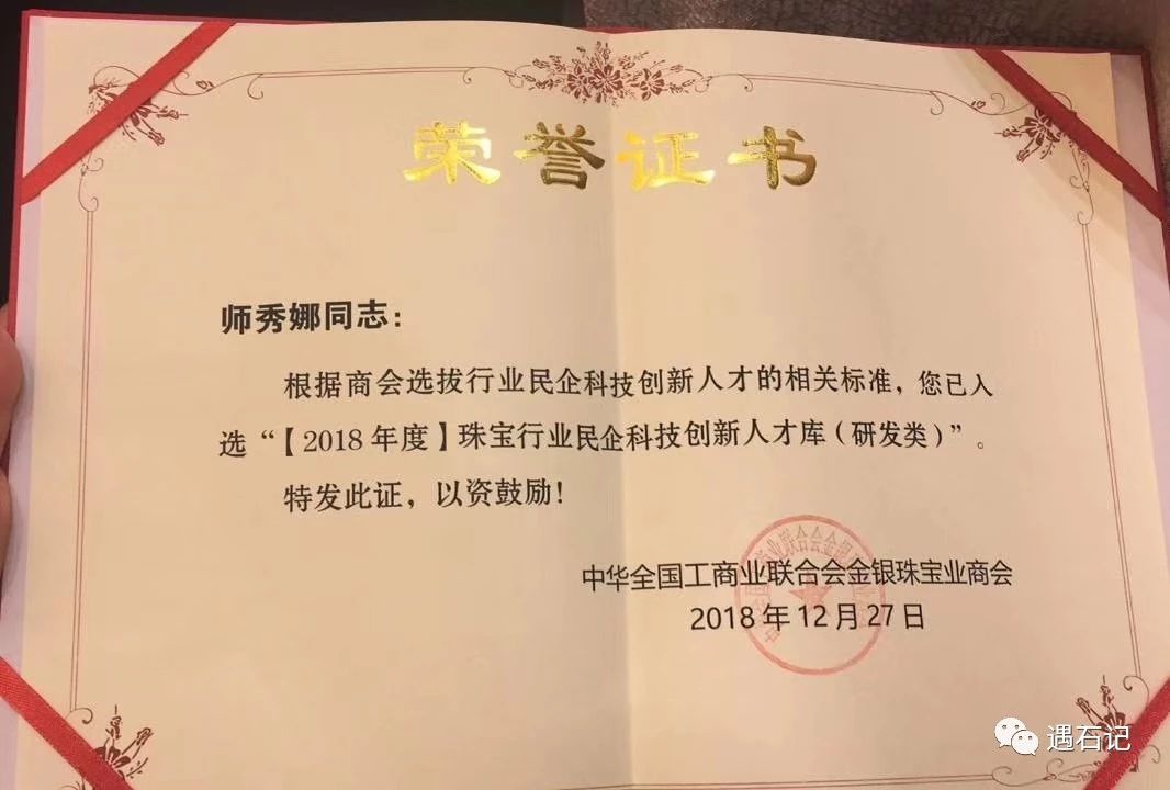 此次中国珠宝产业发展大会系列活动由“科学技术进步奖”推荐论坛、多维立体创新服务信息平台发布、行业科技创新项目发布、对话访谈等众多主题内容组成。遇石记荣获“2018年度优秀理事单位”“与“2018年度守信品牌”两项殊荣。